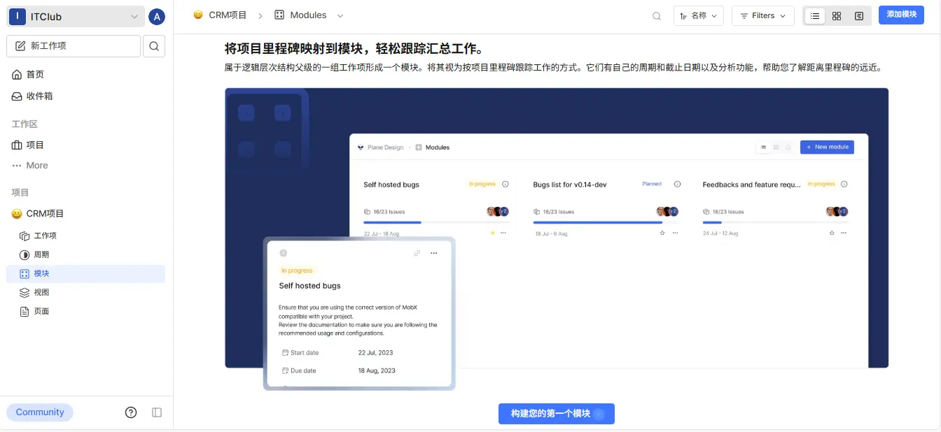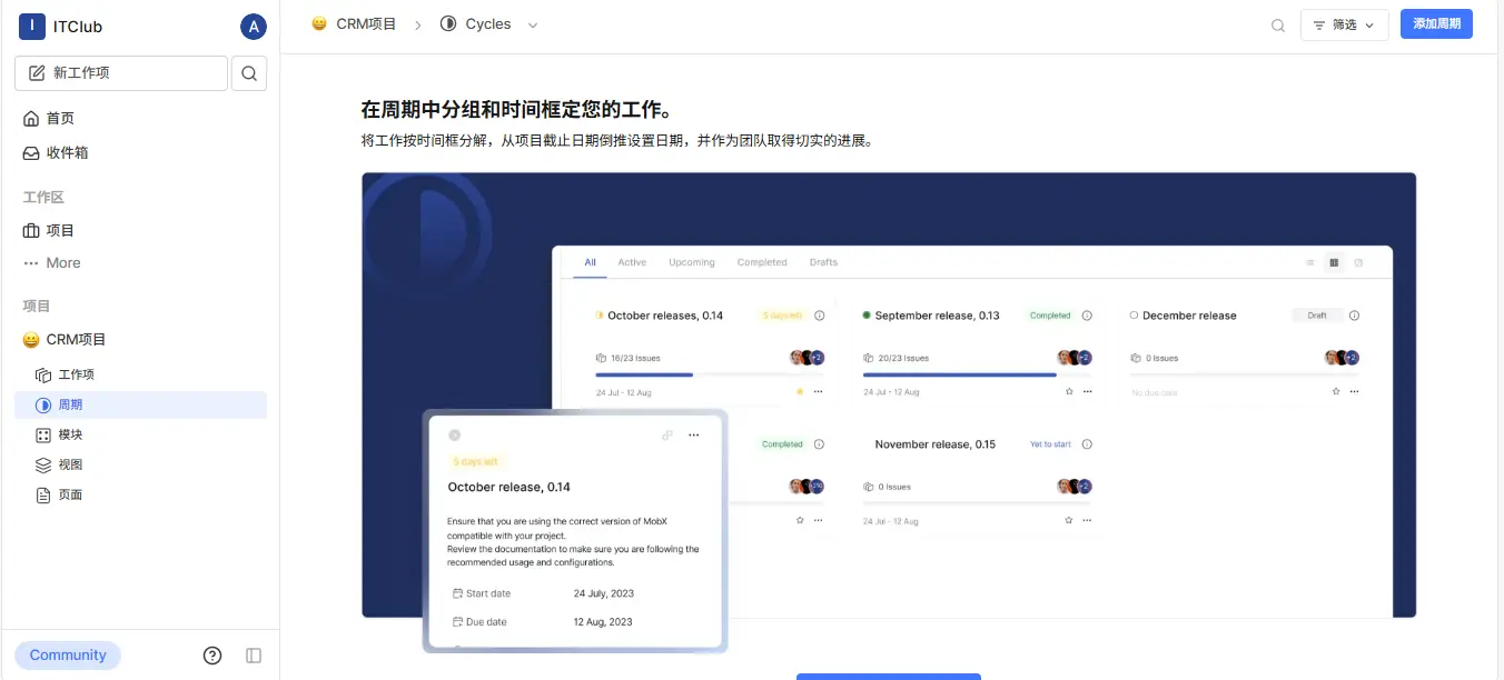 | 🛣️ Roadmap | 支持可视化产品规划和版本发布计划,按季度或里程碑组织任务 |